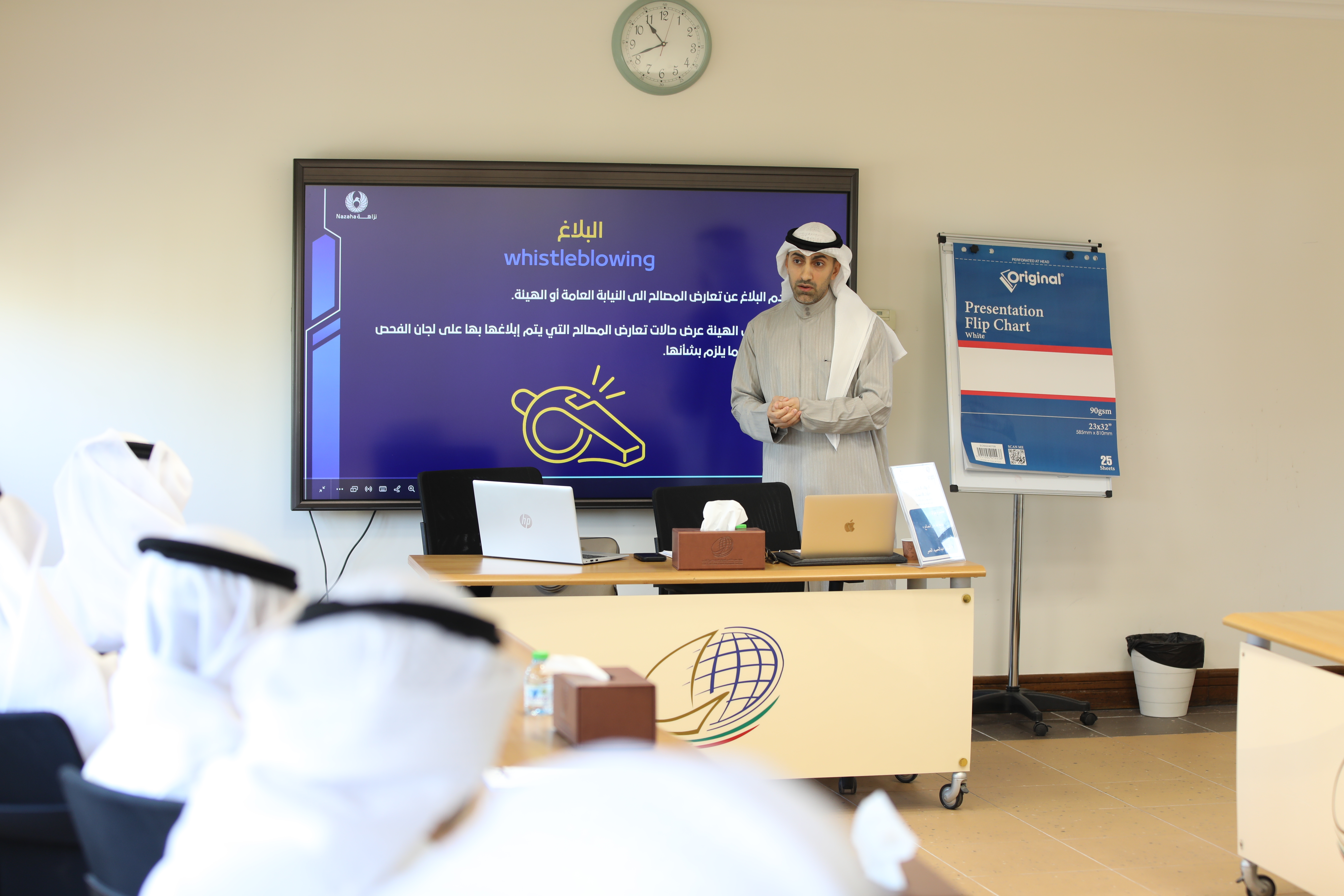 عقد الديوان الوطني لحقوق الإنسان محاضرة حول موضوع "قانون تعارض المصالح" ضمن برنامج الموسم التدريبي للعام ٢٠٢٥/ ٢٠٢٦ وذلك بالتعاون مع معهد سعود الناصر الصباح الدبلوماسي الكويتي قدمها السيد/ عبدالحميد الحمر من الهيئة العامة لمكافحة الفساد وذلك بحضور منتسبي الديوان والوطني لحقوق الإنسان وعدد من الجهات الحكومية.